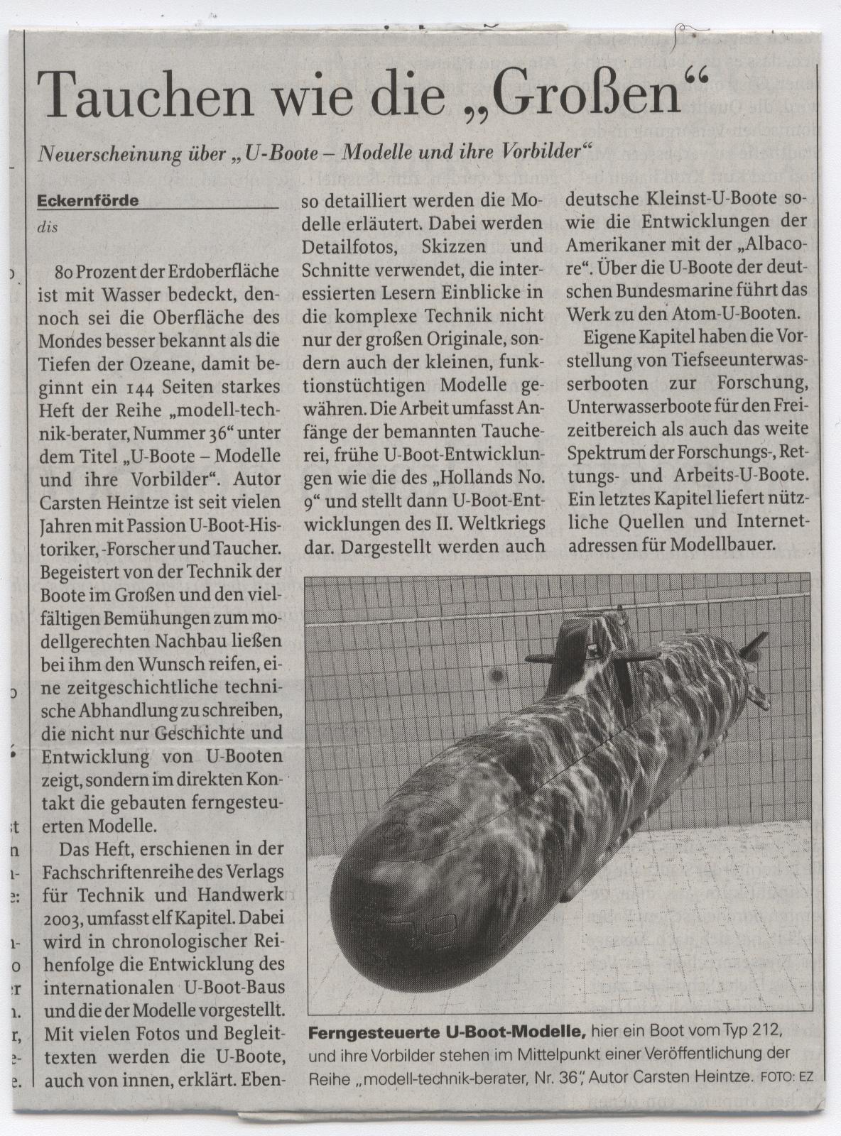 Vorstellung meines Buches in der Eckernförder Zeitung vom 19.02.2004