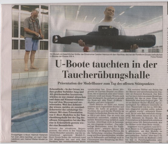 Zeitungsbericht der Eckernförder Nachrichten, nach dem Schaufahren des SONAR e.V in der Taucherübungshalle im Juli 2003